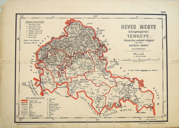 Elkelt. Heves Megye közigazgatási térkép. Papirra kasírozva. Hivatalos adatok alapján rajzolta Hátsek Ignácz m.k. térképész. Mérték lépték: 1 : 500.000. Méret: 37 x 25 cm. Eladó. Ár: Elkelt Ft