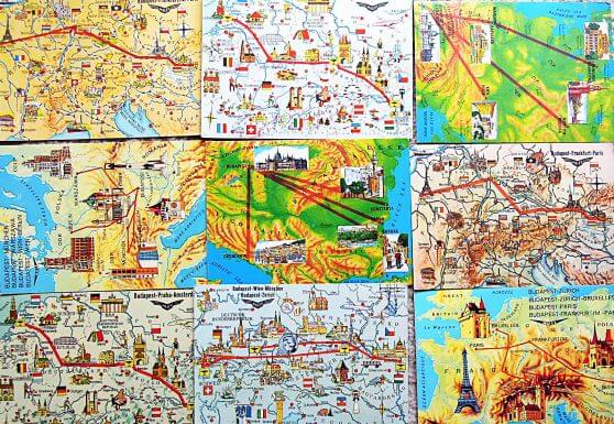 Malév útvonal képeslap postatiszta