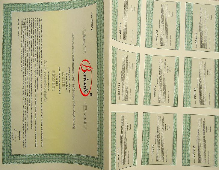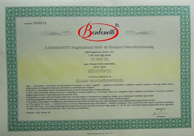 Bonbonetti Nagykanizsa részvény. Eladó. Ár: 350 Ft