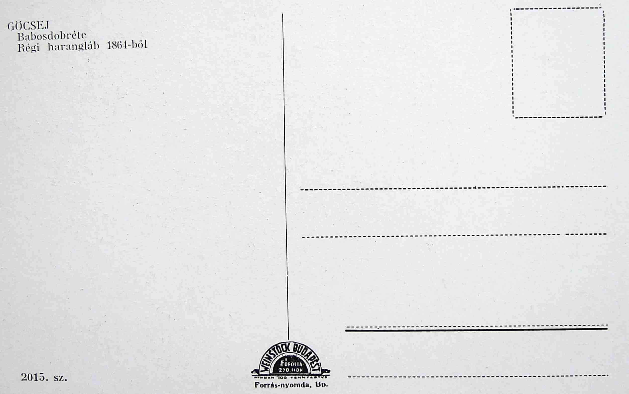 Göcsej Babosdobréte Régi harangláb 1864 Weinstock képeslapElkelt. Göcsej Babosdobréte Régi harangláb 1864 Weinstock képeslap. Eladó. Ár: Elkelt Ft