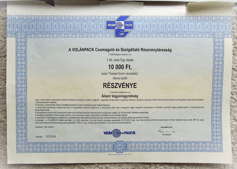 Magyar retro Volán részvény. Eladó. Ár : 390 Ft