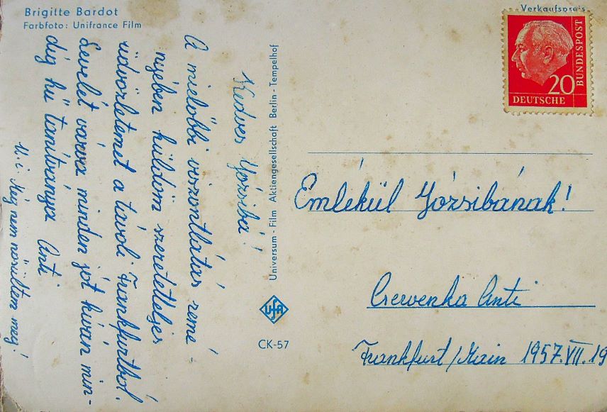 Brigitte Bardot képeslap 1957. Eladó. Ár: 350 Ft