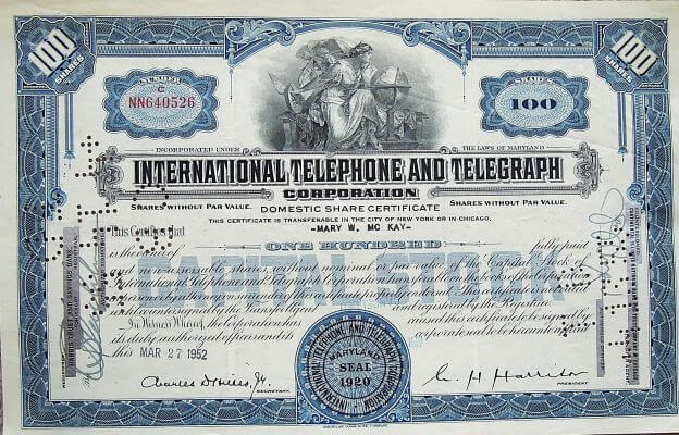 USA retro részvény 1952 ITT International Telephone TelegraphUSA retro részvény 1952 ITT International Telephone Telegraph. Eladó. Ár: 490 Ft